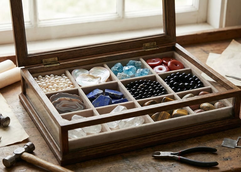 We work with a curated selection of natural stones sourced responsibly and sustainably from small-scale producers. Each stone carries its own colour, texture, and energy, making every piece truly unique.